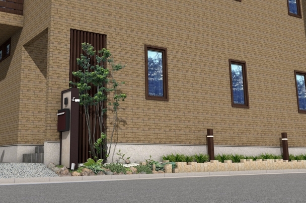新築「一軒家に見える賃貸併用住宅」 シンプルで落ち着きのあるクローズ外構 世田谷区T様邸
