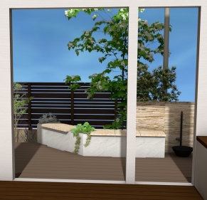 緑のあるデッキテラスを素材やカラーのコーディネートでより魅力的に(世田谷区W様邸)