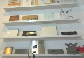 表札のサンプルは福彫さん・美濃クラフトさん・尚美さん・ディーズガーデンさんの一部を置いております。