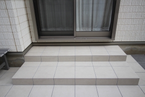 既存のコンクリートタタキを少し形を変えて室内からの出入りが
