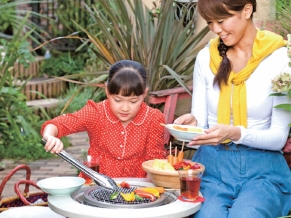 画像左:ティーテーブルとして使用 画像右:グリルテーブルとして使用 普段は、お茶する時のテーブルとして 使用して頂き、時に、バーベキューコンロ にもなる、1人2役の頼もしい?製品です。 | ![]() |